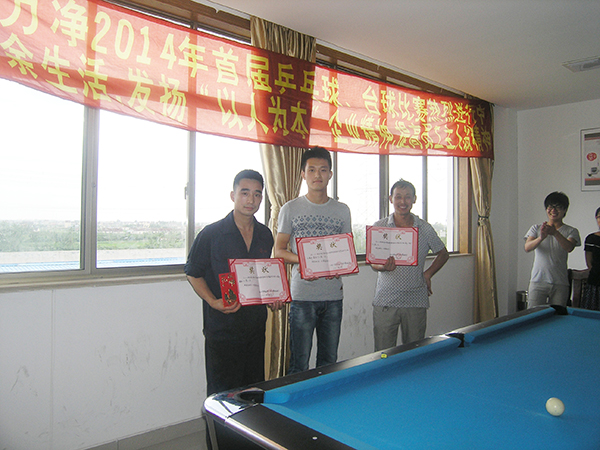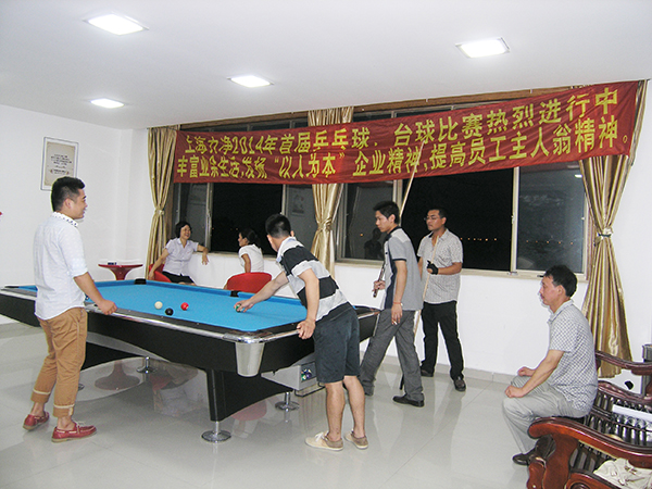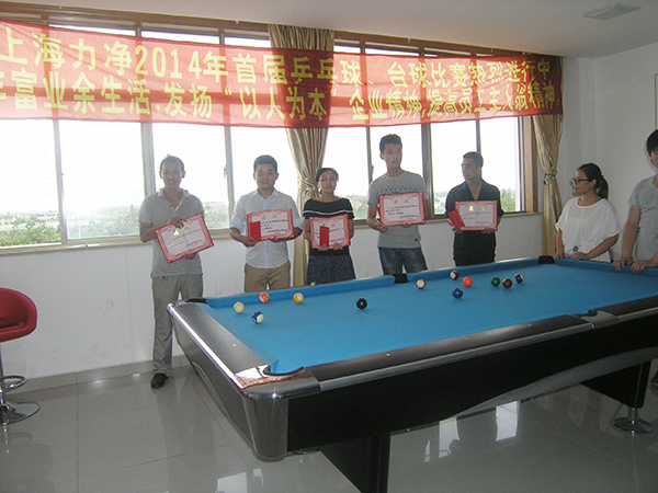上海力凈洗滌機械制造有限公司為了豐富員工的業(yè)余文化生活,提高員工身體素質(zhì),發(fā)展大家的興趣和愛好,本著“以人為本”的企業(yè)精神,發(fā)揚員工主人翁的精神,也為進一步推進公司企業(yè)文化落地的堅實腳步,樹立良好的企業(yè)形象,營造企業(yè)大家庭氛圍,體現(xiàn)公司關(guān)愛員工的企業(yè)核心價值觀,加強員工之間的交流與溝通,為工作中的溝通打下良好基礎(chǔ),在這個驕陽似火的7月舉辦了一場轟轟烈烈,熱熱鬧鬧的2014年首屆乒乓球、臺球賽,以增加各部門員工之間的交流和友誼,公司采取個人自愿報名的形式,各位員工踴躍報名,共有48人參加了此次活動,桌球28人,乒乓球20人,比賽地點:公司員工娛樂室,大家心情愉悅,熱情高漲。