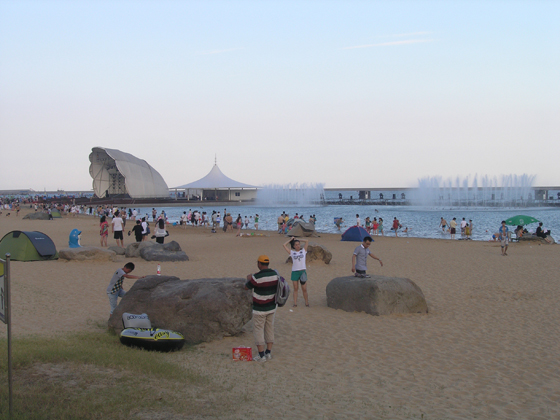 包括我在內(nèi)的幾十個同事在謝總與張總的帶領(lǐng)下于21日下午抵達(dá)了我們的目的地——碧海金沙。碧海金沙是奉賢新興的水上娛樂天堂。兒童游樂園、水上步行球、水上攀巖、氮?dú)馍諝馇颉?D電影、冰燈、冰雕藝術(shù)展等一系列精彩紛呈的水上娛樂項(xiàng)目吸引著大批的游人前往,真可謂是人山人海。我們迅速換好了裝備投入了我們美麗的大海的懷抱。海水、沙灘、音樂噴泉……嬉鬧的我們忘卻了炎熱與生活在大城市里的壓力。那一瞬間我們仿佛找回了幼年的快樂與激情。