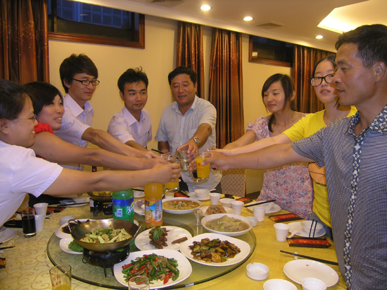 歡樂的時光總是走的特別快,不知不覺中已是夕陽西下了,戀戀不舍的我們離開了充滿無限魅力的碧海金沙,前往下一個目的地——洪廟大酒店。當(dāng)我們抵達(dá)酒店的時候,公司已經(jīng)為我們準(zhǔn)備好了滿滿幾桌的美酒佳肴。疲憊不堪的我們難以抵制美食的誘惑,很快就狼吞虎咽的吃起來了。美酒、佳肴、夜光杯,還有什么能比此時的我們更幸福呢?